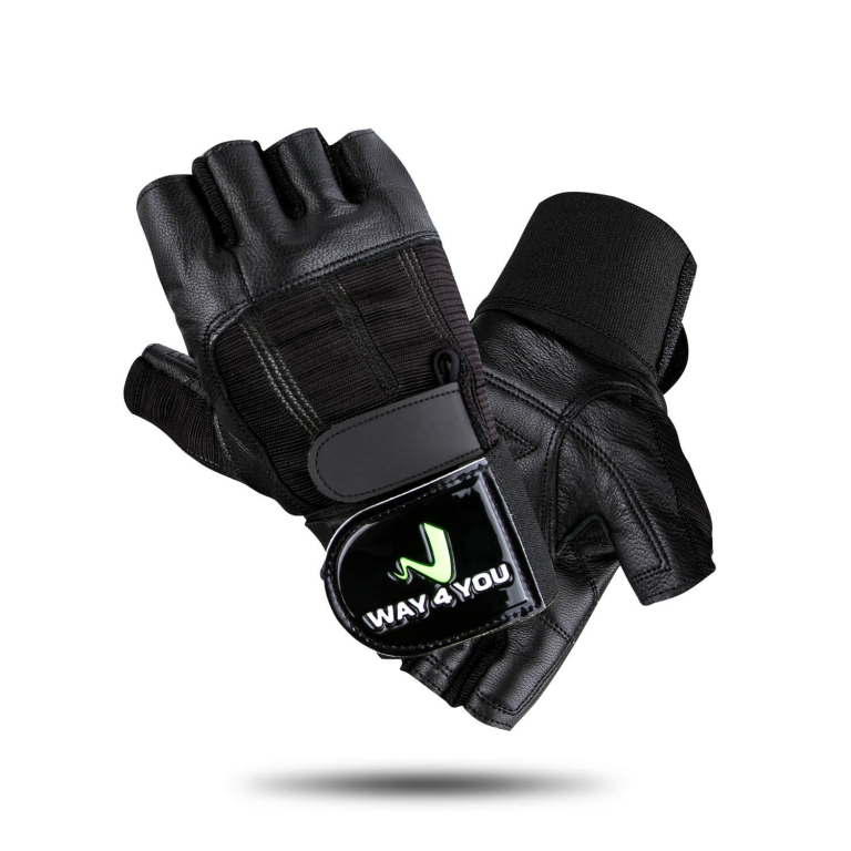 Перчатки для тренажерного зала с напульсником Way4you-Black