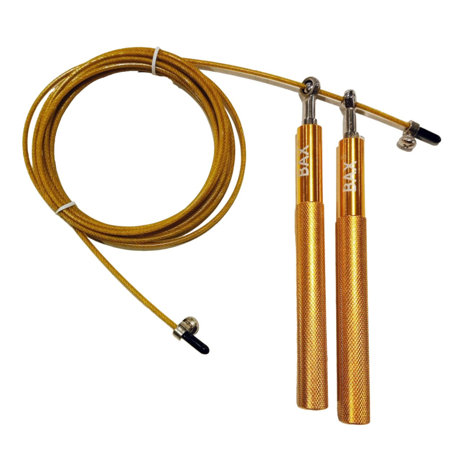 Швидкісна металева скакалка від бренду BAX – один із найкращих спортивних снарядів для професійних спортсменів та тих, хто займається спортом у домашніх умовах. Шнур скакалки виготовлений із сталевого троса, покритий нейлоновою обплетенням і є досить легким. Це дозволяє здійснювати максимальну кількість стрибків на протязі невеликого періоду часу. При цьому темп тренування досить високий. Зручність під час виконання стрибків забезпечують ергономічні ручки із спеціальним антиковзним покриттям. Тримаючи такі ручки, Ви можете спокійно тренуватися, не переймаючись тим, що вони вислизнуть або випадуть. У свою чергу, підшипники мінімізують тертя шнура під час швидкого обертання.