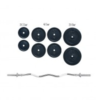 В набор входит:Гриф – W-образный 1.2 метра, диаметром 2.5 см. весом 5 кг., гайки.Диски:2х10 кг.4х5 кг.2х2,5 кг.