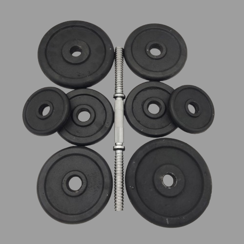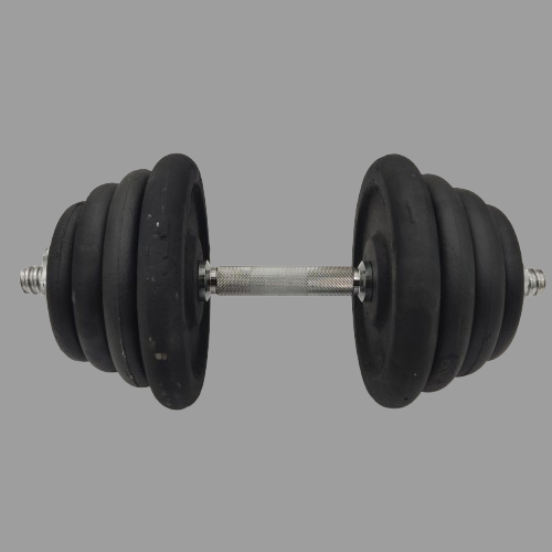 Пропонуємо до вашої уваги чудову набірну гантель вагою 23,5 кг. Гриф сталевий, вкритий фарбою, довжина грифа 41 см., що дозволить набрати гантель до 40 кг.