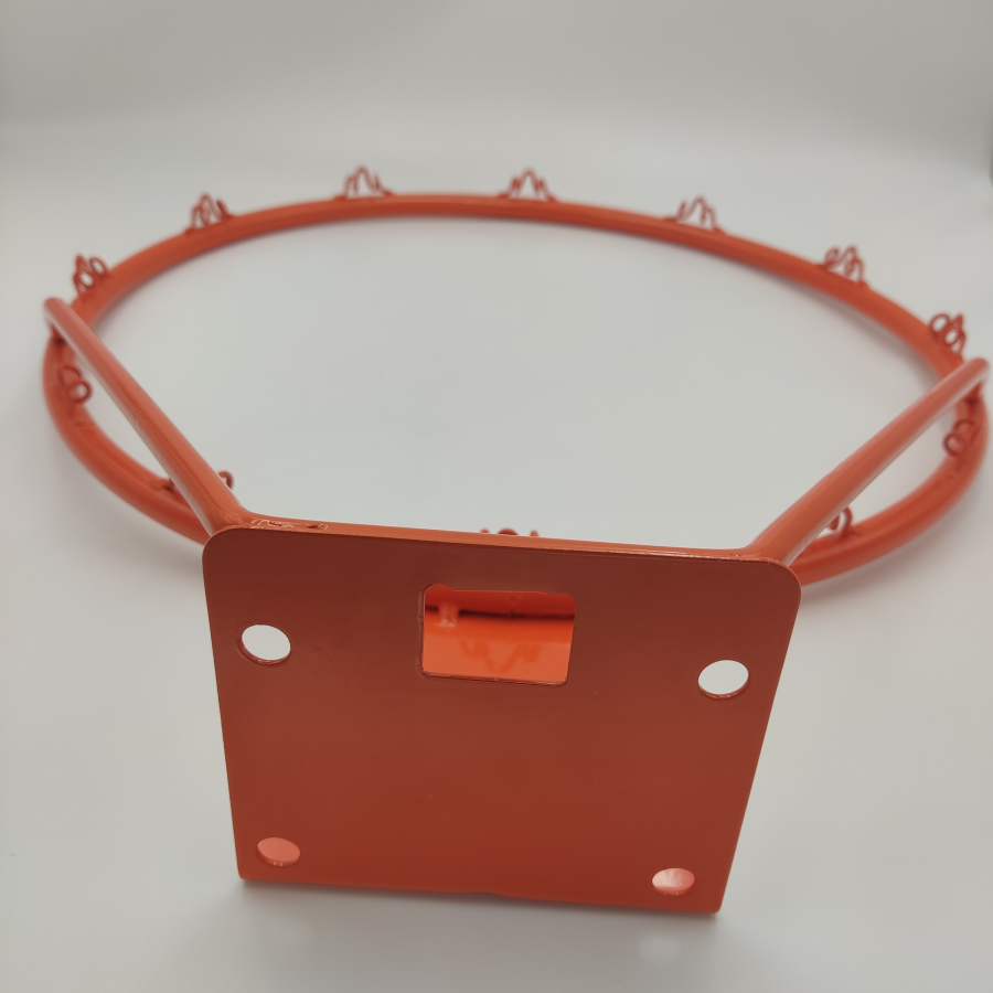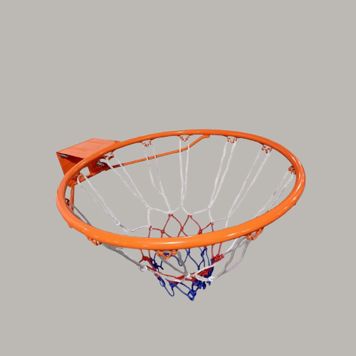 Кільце виготовлене із труби діаметром 16 мм. Також спортивний аксесуар укомплектований нейлоновою сіткою. Сітка пофарбована в яскравий колір і тому і кільце, і сітка добре видно гравцю з будь-якої відстані.
