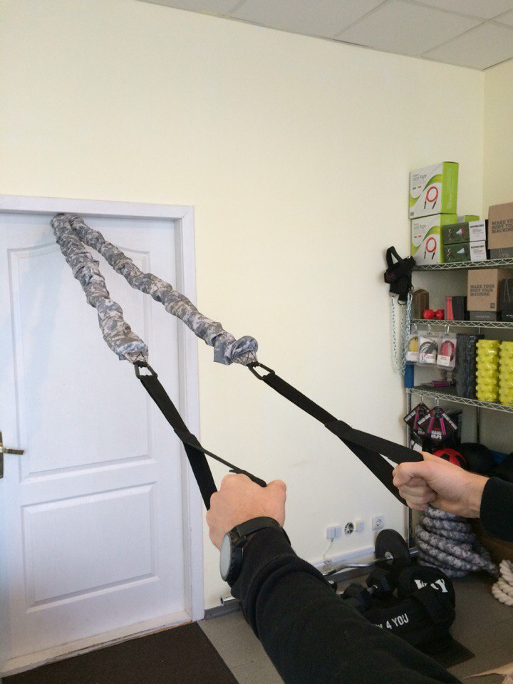 - в комплекте два универсальных крепления ( якоря ). 1-й возможно использовать зажав в дверном проеме, 2-й можно прикрепить к дереву, столбу, шведской стенке, что позволяет проводить тренировки где угодно как на улице так и в помещение.
