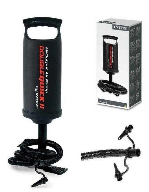 Независимо от доступности электропитания, погодных условий и места время припровождения можно использовать ручной насос для накачивания лодок, мячей,, матрасов, бассейнов, детских резиновых игрушек и многих других надувных предметов. Так как насос состоит из легкого ударопрочного пластика, его практически невозможно вывести из строя или сломать. Ручной насос Intex удобен в использовании, компактен. В комплекте к ручному насосу Intex II имеется гофрированный шланг и три разных насадки-переходника. Они предназначены для надувания изделий с разными по размеру клапанами. Идеально подходит для любых надувных товаров Intex.