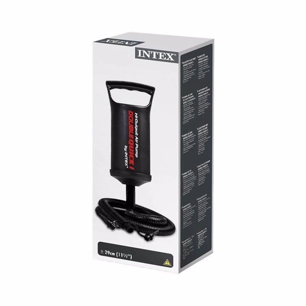 Независимо от доступности электропитания, погодных условий и места время припровождения можно использовать ручной насос для накачивания лодок, мячей, матрасов, бассейнов, детских резиновых игрушек и многих других надувных предметов. Так как насос состоит из легкого ударопрочного пластика, его практически невозможно вывести из строя или сломать. Ручной насос Intex удобен в использовании, компактен. В комплекте к ручному насосу Intex I имеется гофрированный шланг и три разных насадки-переходника. Они предназначены для надувания изделий с разными по размеру клапанами. Идеально подходит для любых надувных товаров Intex.