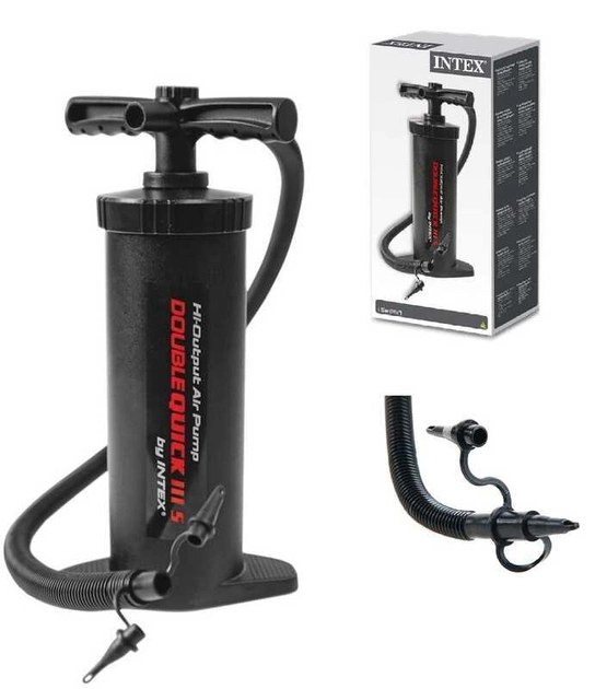 Независимо от доступности электропитания, погодных условий и места время припровождения можно использовать ручной насос для накачивания лодок, мячей, матрасов, бассейнов, детских резиновых игрушек и многих других надувных предметов. Так как насос состоит из легкого ударопрочного пластика, его практически невозможно вывести из строя или сломать. Ручной насос Intex удобен в использовании, компактен. В комплекте к ручному насосу Intex III имеется гофрированный шланг и три разных насадки-переходника. Они предназначены для надувания изделий с разными по размеру клапанами. Идеально подходит для любых надувных товаров Intex.