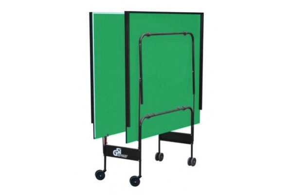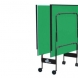 Теннисный стол базируется на удобной тележке, изготовленной из металлического трубчатого профиля диаметром 25 мм с полиэфирным покрытием. Конструкция стола позволяет тренироваться в одиночку. Стол легко перемещается на 4-х сдвоенных колесах диаметром 105 мм, 2 колеса маневренные. Стол комплектуется сеткой.