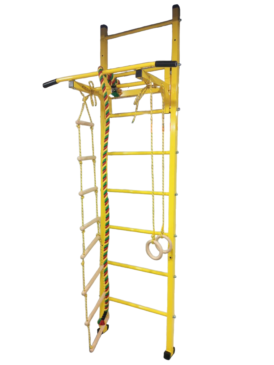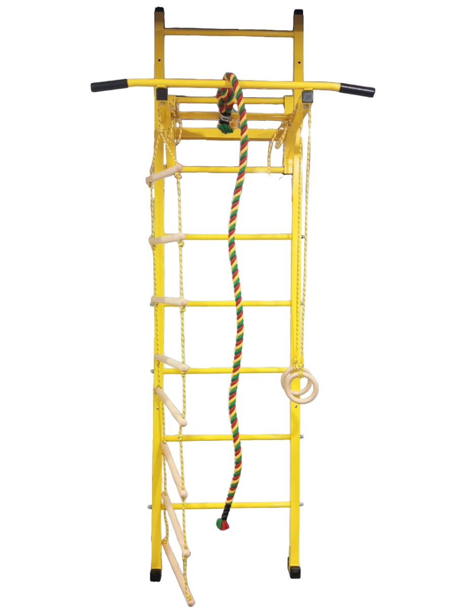 Детская шведская стенка BAR2FIT крепится к стене и используются бесчисленными способами для силовых, кондиционных и гибких упражнений. Он включает в себя веревочную лестницу, альпинистскую веревку, гимнастические кольца и перекладину, что делает нашу шведскую лестницу уникальной и интересной, предоставляя все основные функции в компактном дизайне.