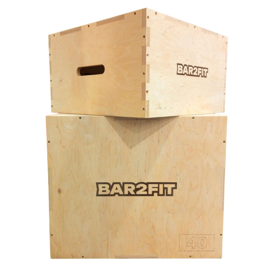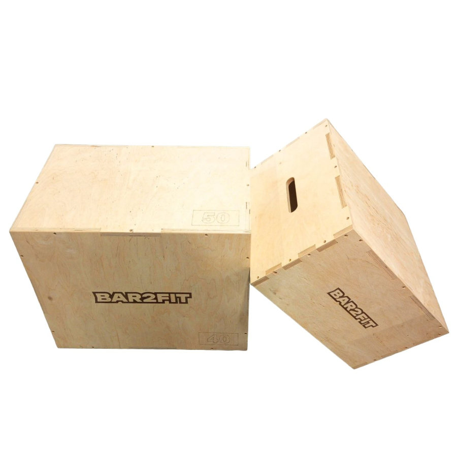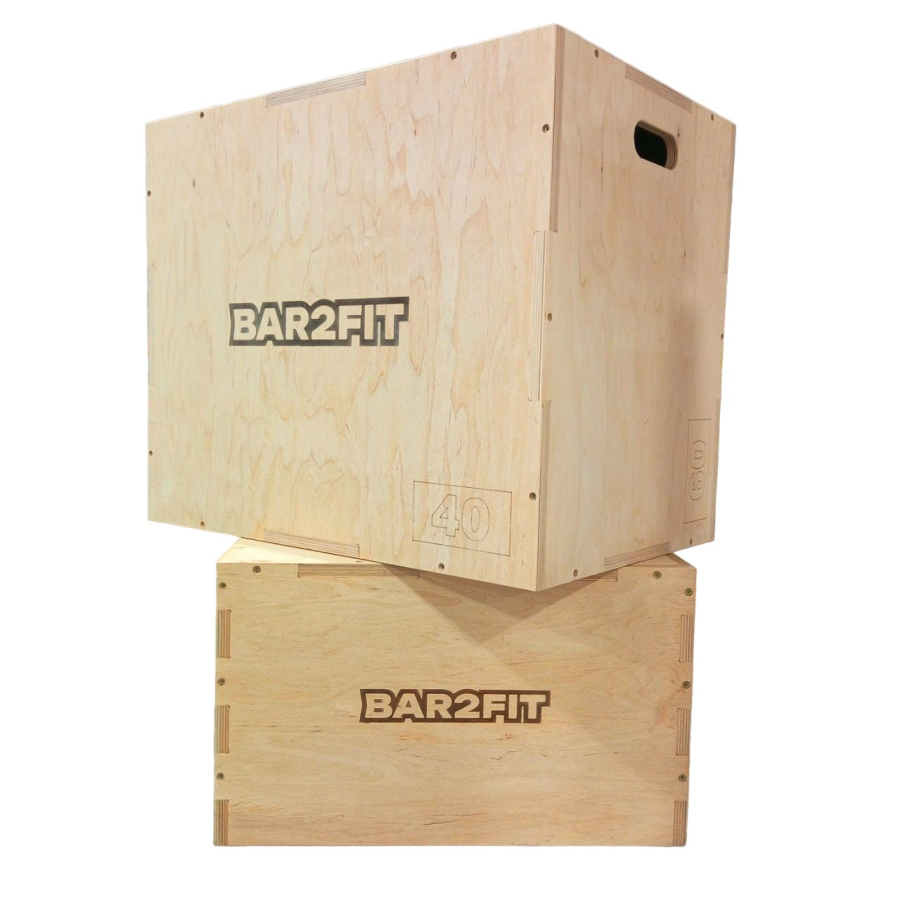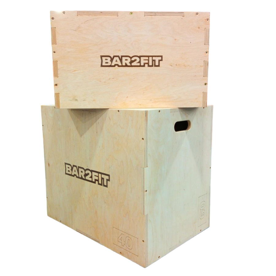 Набор плиометрических боксов BAR2FIT состоит из двух тренажеров размерами 60 х 50 х 40 см и 50 х 50 х 20 см., который еще называется тумба для запрыгивания или бокс для кроссфита – это профессиональный и практичный инструмент, который используется в широком спектре упражнений и особенно. поклонниками фитнеса и кроссфита. Принцип тренировок заключается в выполнении быстрых взрывных движений, позволяющих увеличить мышечную силу нижней части тела, а также улучшить технику выполнения определенных элементов, направленных на развитие устойчивости и силы.