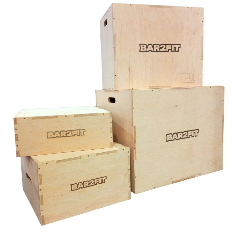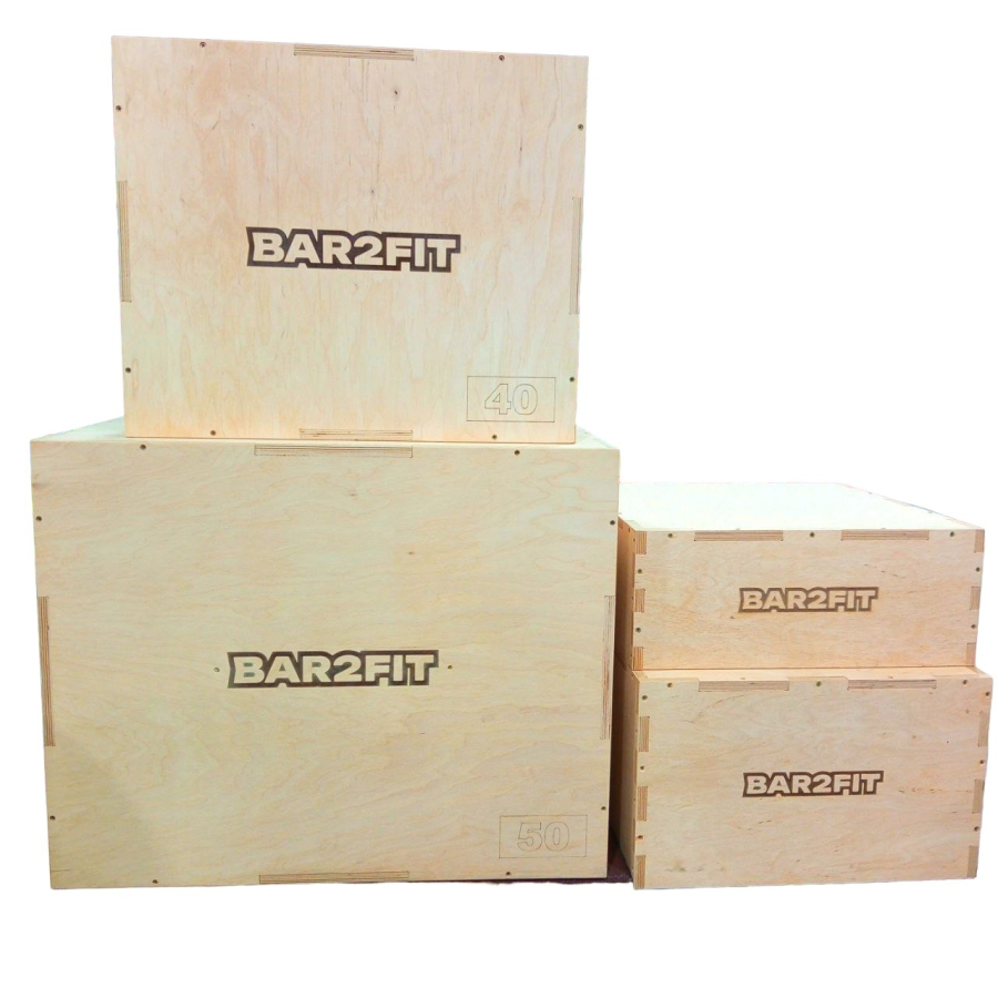 Набор плиометрических боксов BAR2FIT состоит из трех тренажеров размерами 75 х 60 х 50 см, 60 х 50 х 40 см, 50 х 50 х 30 см и 50 х 50 х 20 см, который еще называется тумба для запрыгивания или бокса. и практичный инструмент, который используется в широком спектре упражнений и особенно ценится поклонниками фитнеса и кроссфита. Принцип тренировок заключается в выполнении быстрых взрывных движений, позволяющих увеличить мышечную силу нижней части тела, а также улучшить технику выполнения определенных элементов, направленных на развитие устойчивости и силы.