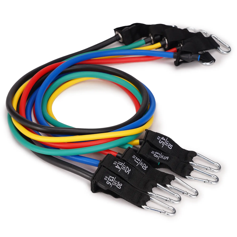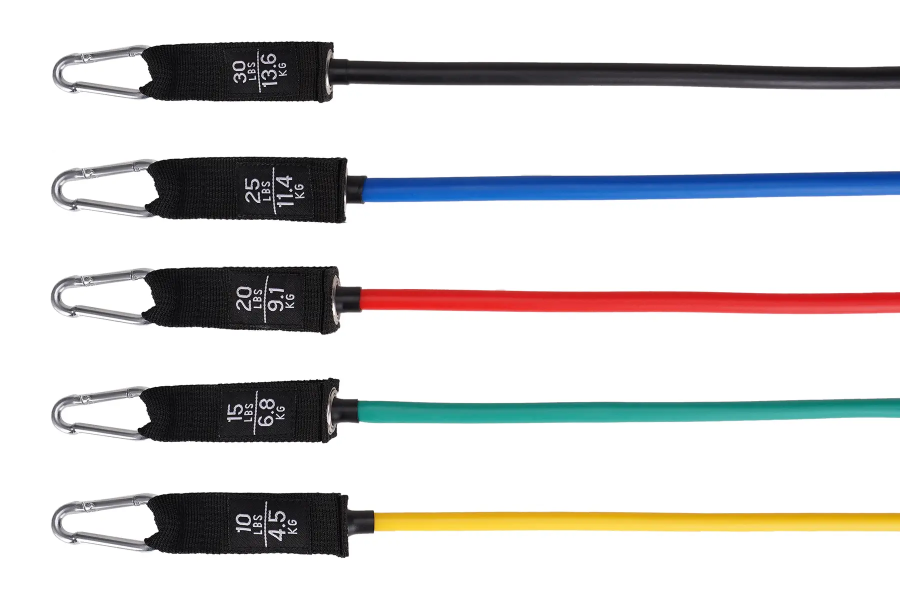Спортивный инвентарь состоит из трубчатых латексных жгутов и эргономичных пластиковых ручек. Изделие способно выдерживать огромные регулярные нагрузки без потери спортивных качеств. Благодаря наличию 5 жгутов между ручками можно регулировать силовое натяжение в зависимости от уровня физического развития и желаемых результатов. С обеих сторон расположены металлические карабины. К карабинам крепятся рукоятки либо манжеты на липучках. Для выполнения статических упражнений в комплекте предусмотрен дверной анкер. С его помощью можно зафиксировать одну сторону эспандера. Суммарная нагрузка от 5 эспандеров составляет 45.4 кг. Чтобы избежать растяжений и травм перед использованием эспандера, следует настроить под себя.