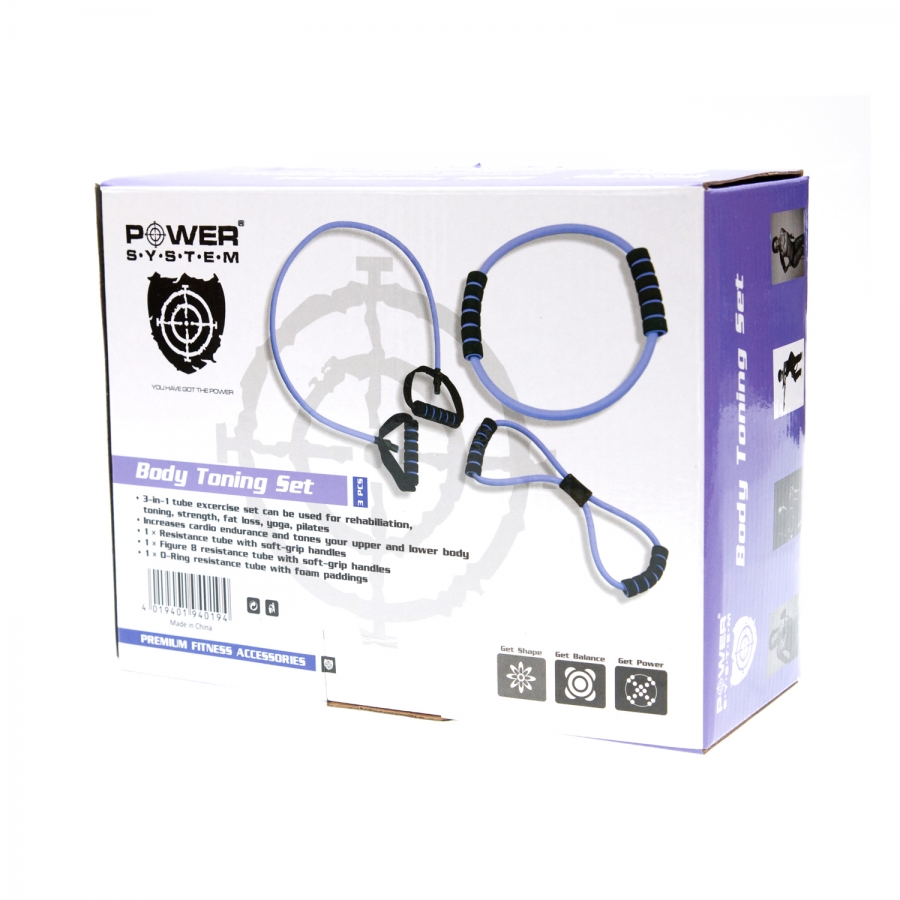 Эспандер трубчатый Body Toning Set PS 4019 Power System это набор из трех устройств, используемых для реабилитации, коррекции фигуры, сжигание жира, а также во время йоги и пилатеса.