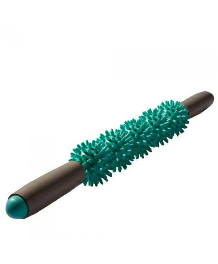 Он представляет собой ролик с массажными секциями с двумя удобными прорезиненными ручками.