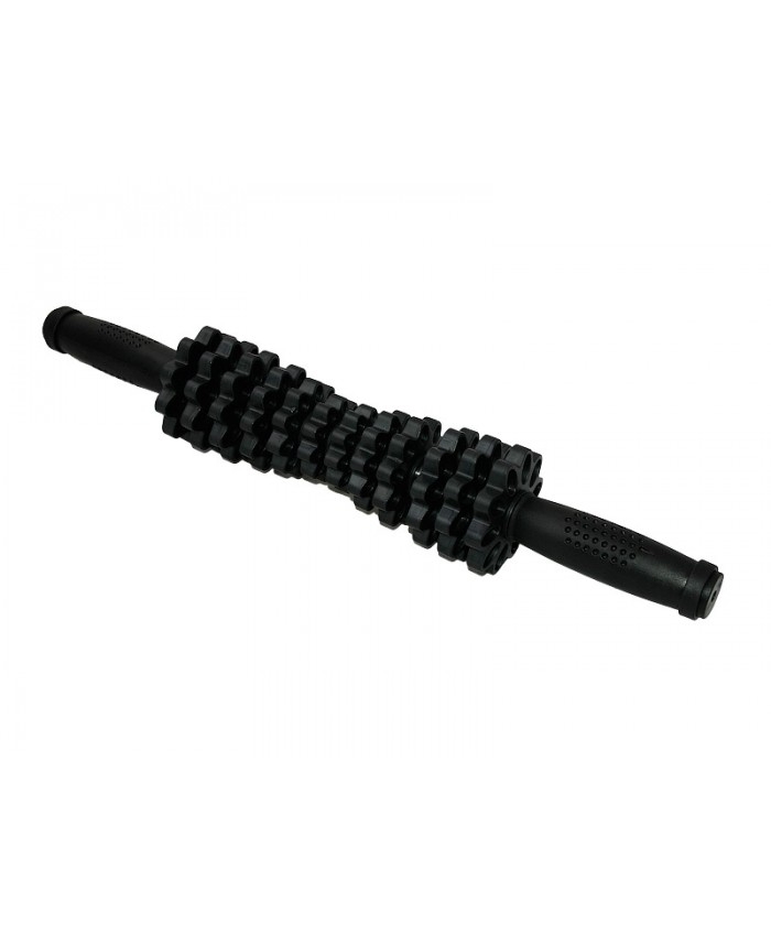Ролик представляет собой широкий цилиндр с массажными секциями и двумя удобными