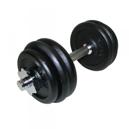 Предлагаем вашему вниманию отличную наборную гантель весом 11,5 кг. Гриф стальной, покрыт хромом, длина грифа 40 см, что позволит набрать гантель до 40 кг.