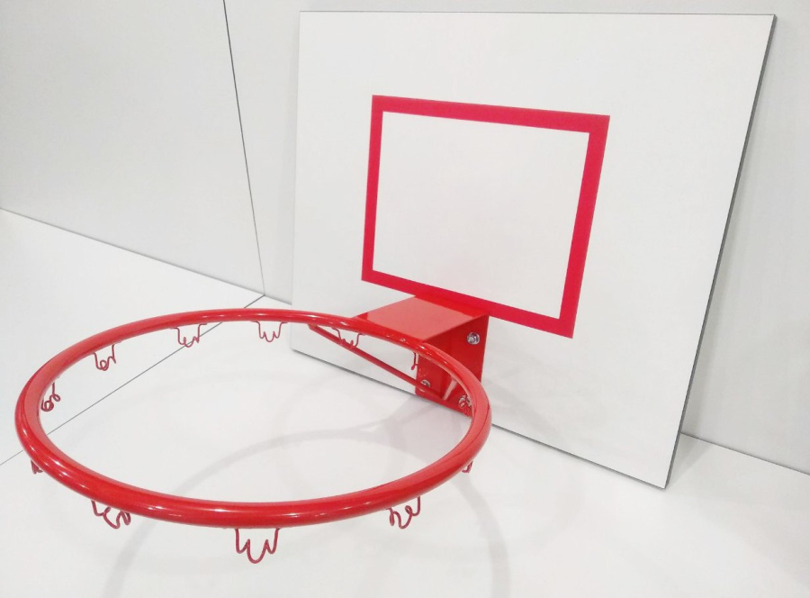 Материал основания баскетбольного щита ЛДСП, размером 100см*80см. Диаметр баскетбольного кольца составляет 45 см, что подойдет как для детского баскетбольного мяча №5 так и для стандартного мяча №7.