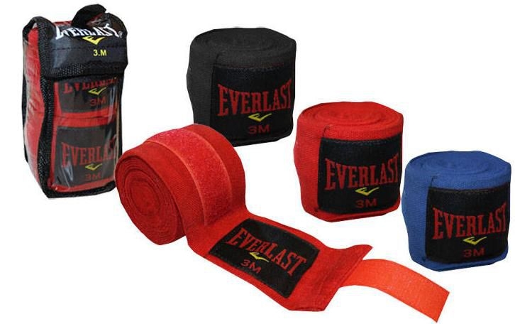 Бинты боксерские – эластичные хлопковые ленты, которые бойцы различных видов единоборств используют для предотвращения травм кулаков, запястий и пальцев. Бинт также фиксирует суставы пальцев в одну линию, что делает удар сильнее. Бинт впитывает пот, увеличивая срок годности перчаток.