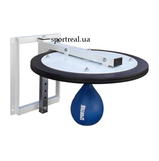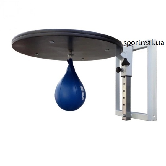 Каркас сделан из качественного металла и окрашен порошковой краской с последующим запеканием при высокой температуре. Благодаря двум фиксаторам изменение высоты платформы происходит быстро и без инструмента. Снизу к каркасу присоединена платформа (ламинированная фанера 22мм в два слоя), служащая для отскока груши.