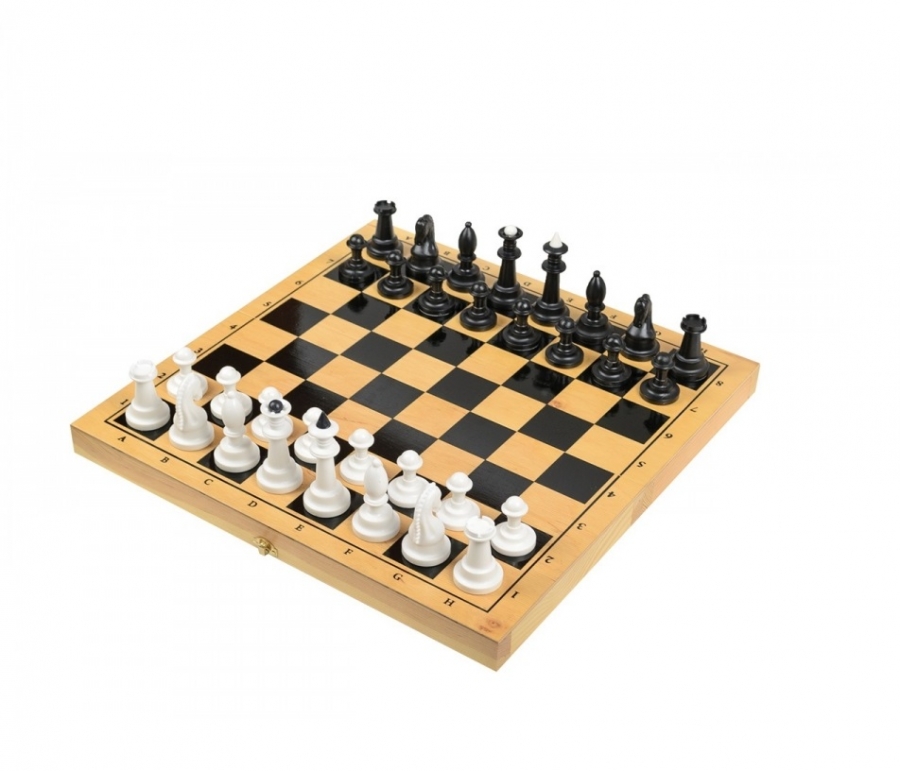 Складная шахматная доска изготовлена из дерева, фигуры - пластиковые, без утяжелителя, классического дизайна. Шахматная доска служит также коробкой для фигур, что удобно для транспортировки.