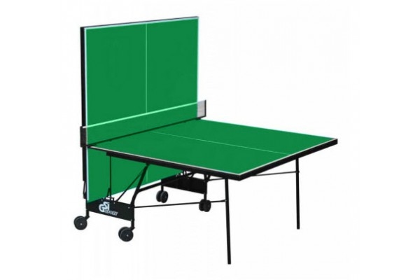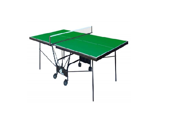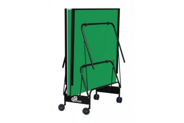 Игровая поверхность оснащена металлической рамой (прямоугольный профиль 30*20 мм). Теннисный стол базируется на компактной удобной тележке, изготовленной из металлического трубчатого профиля диаметром 25 мм с полиэфирным покрытием. Конструкция стола позволяет тренироваться в одиночку. Стол легко перемещается на 4-х сдвоенных колесах диаметром 105 мм, 2 колеса маневренные. Стол комплектуется сеткой.