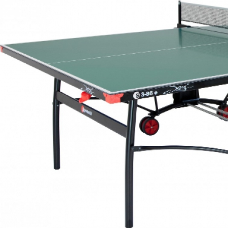 Теннисный стол складной всепогодный. Это любительский всепогодный стол нового поколения. Инновационный дизайн, надежность и безопасность в сочетании с простотой и удобством системы складывания делают его очень привлекательным! В конструкцию стола внедрена новейшая система SMS (Smart Manual System) фиксации в сложенном и разложенном положении с удобным механизмом отпирания одной ручкой. Оборудован сдвоенными обрезиненными колесами, диаметром 128 миллиметров. Все колеса маневровые.