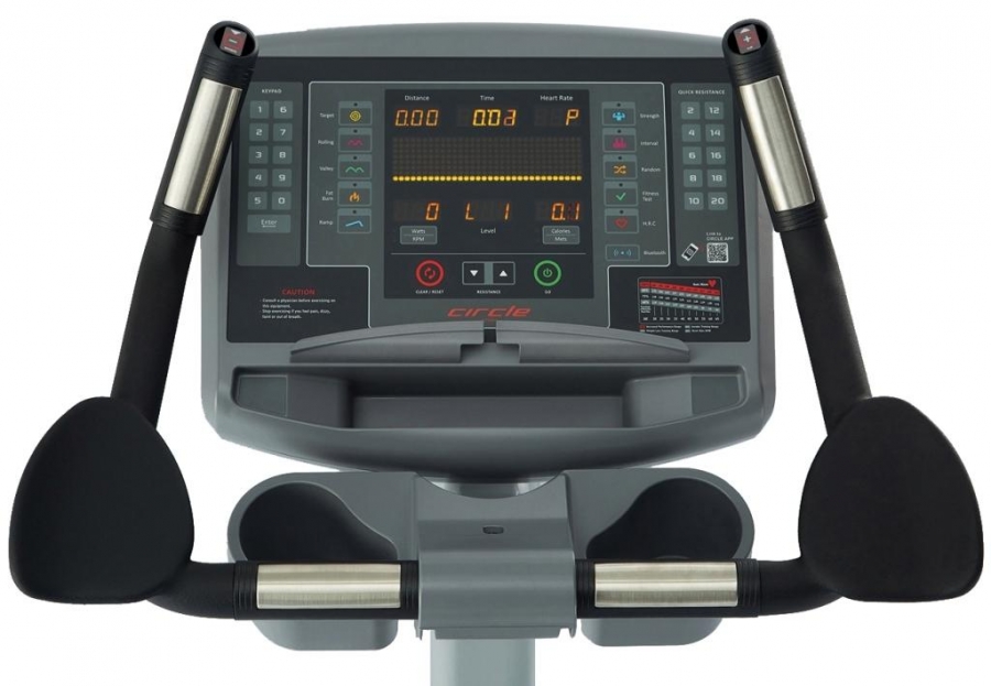Показания дисплея: Время, дистанция, пульс, нагрузка в ваттах, обороты в минуту, уровень нагрузки, калории