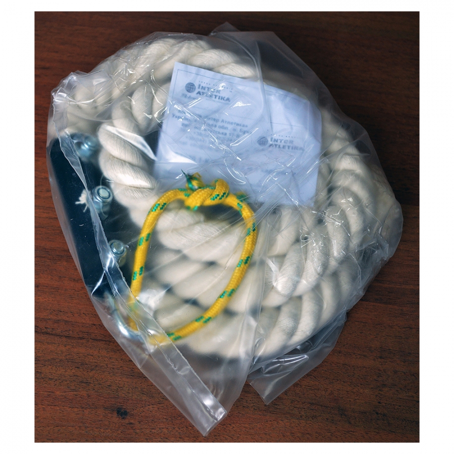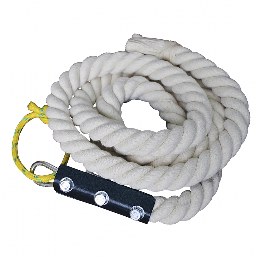 Для крепления каната в комплекте предусмотрен карабин, с помощью которого можна подвесить канат за какой либо крюк или скобу на соответсвующей надежной конструкции.