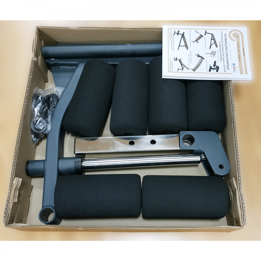 При фиксации подвижной части (фиксатор в комплекте) можно выполнять упражнения на мышцы пресса.